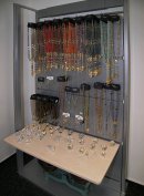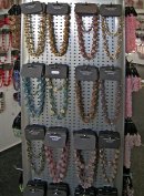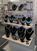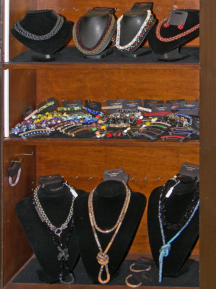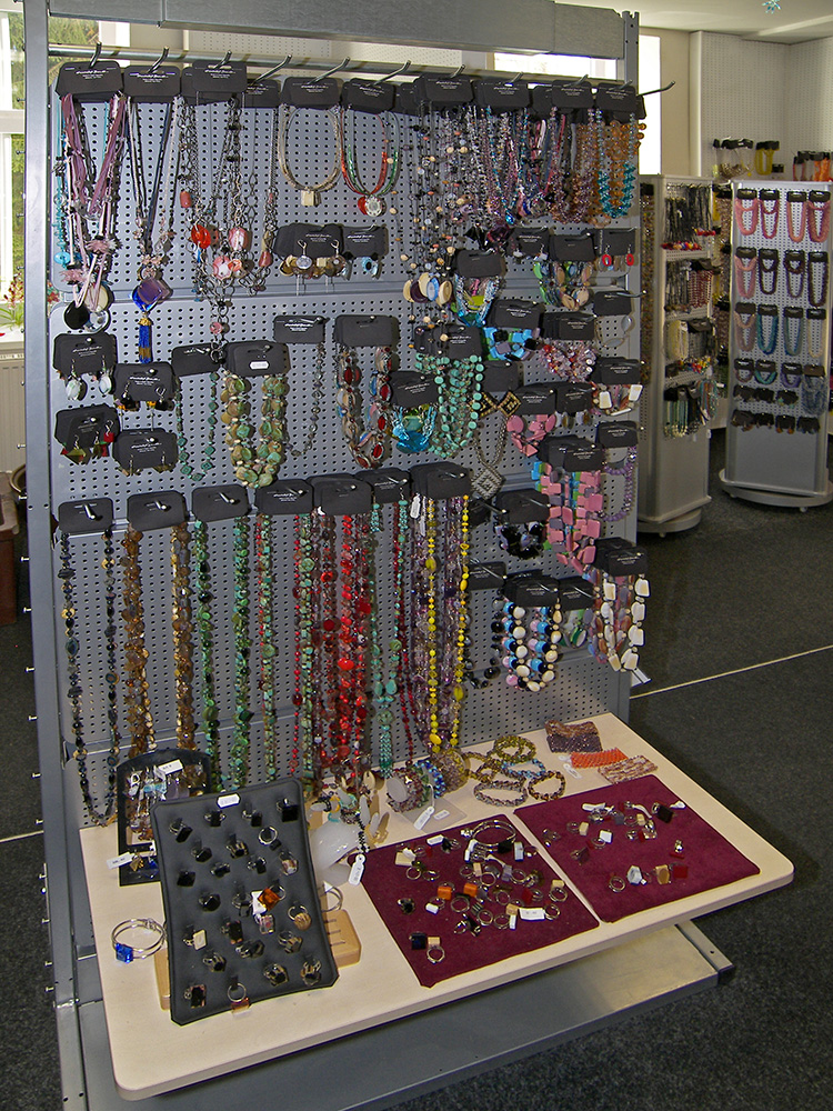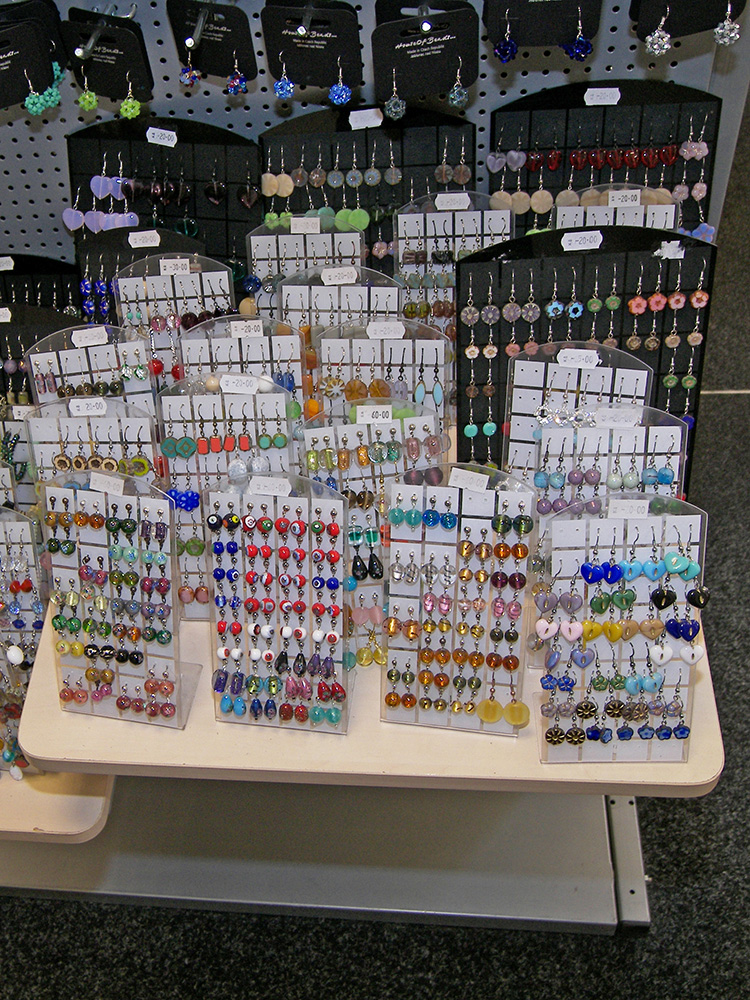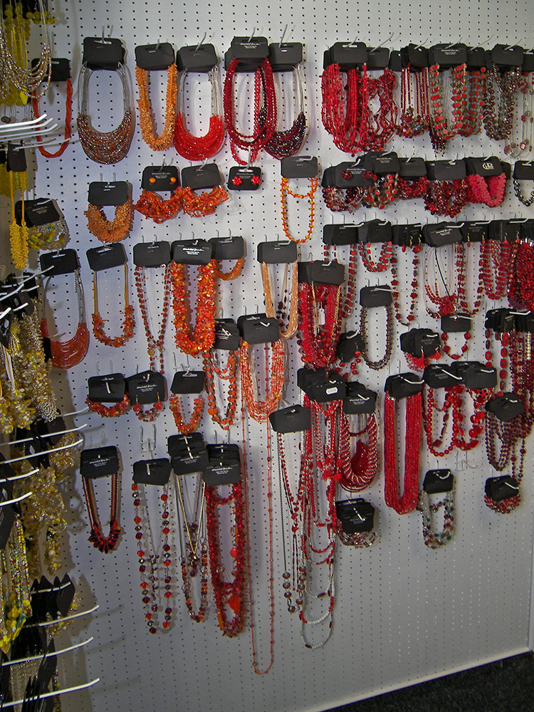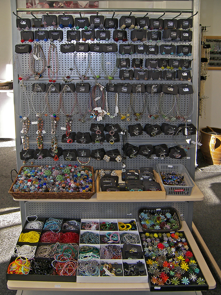 Sortiment: bižuterie skleněná, bižuterie kovová, bižuterie z jiných materiálů, skleněné kameny, mačkané perle a ohňovky, skleněné perle vinuté, perličky (rokajl, šmelc), perle ostatní (dřevo, plast, přírodní), bižuterní polotovary a komponenty, skleněné knoflíky, skleněné vánoční ozdoby, skleněné reklamní předměty a suvenýry, obaly na sklo a bižuterii.